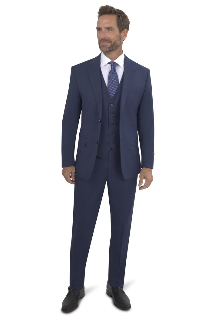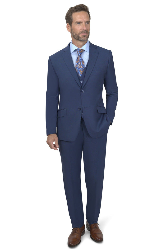 Bergamo Elegant Sharkskin Vested Slim Fit New Blue Suit